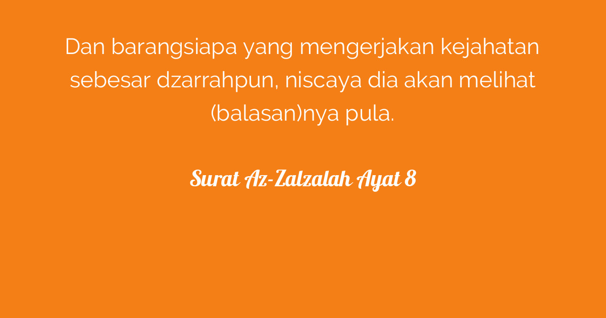 Barangsiapa yang mengerjakan kebaikan seberat dzarrahpun, niscaya dia akan melihat (balasan)nya.